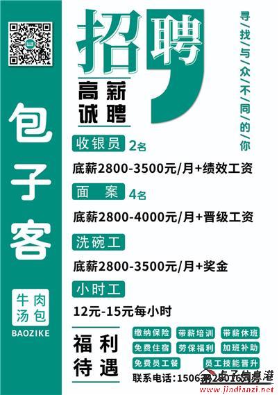 2800-4000元/包子客滨河花苑诚聘