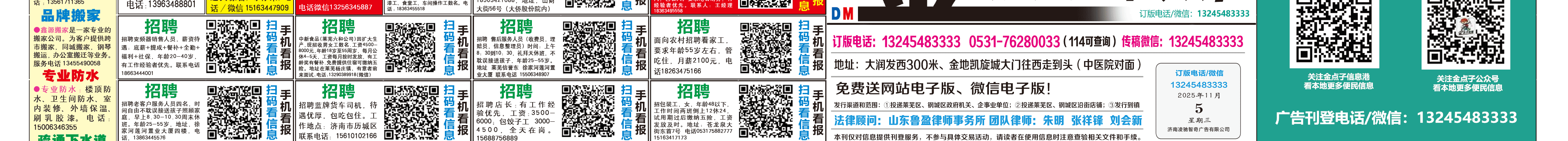 《莱芜金点子广告》报纸11月5日三、四版 http://www.jindianzi.net 发布日期:2025/11/5 9:43:08 文章作者:莱芜金点子信息港