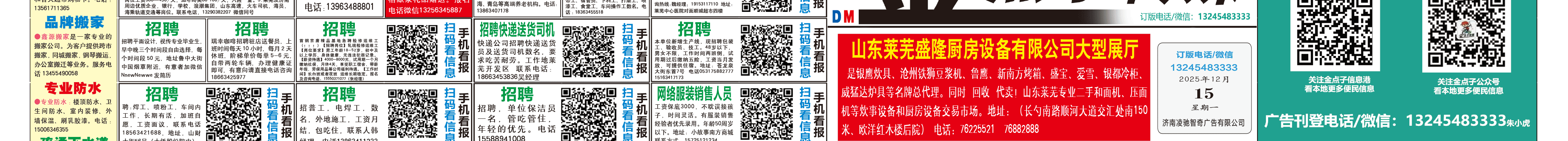 《莱芜金点子广告》报纸12月15日三、四版 http://www.jindianzi.net 发布日期:2025/12/15 9:34:40 文章作者:莱芜金点子信息港